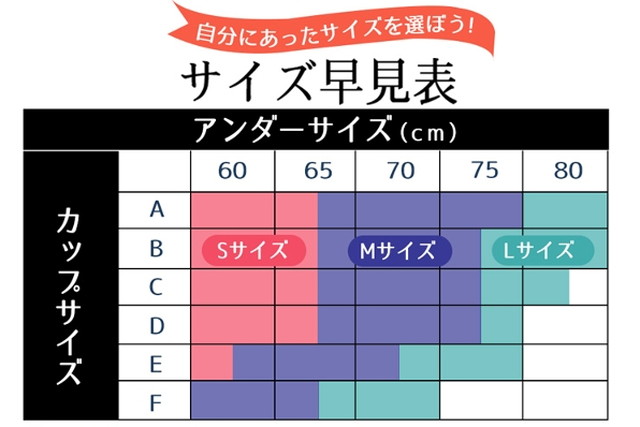 - カップサイズ:A~Fまで。